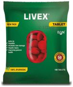 Liver is a hard working organ performing around 500 functions. Thus fuelling up the liver can help strengthen immunity, manage infections and add healthy years to Life. The Livex is a unique combination of time-tested and trusted herbs like kalmegh, kasaundi, bhringraj, bhauamalaki, sarpunkha, kasni etc reputed in age-old science of ayurveda to maintain liver health. Livex tablet can help manage viruses and infections and reduce toxins in the liver. Regular consumption may help in managing concerns associated with digestion.
