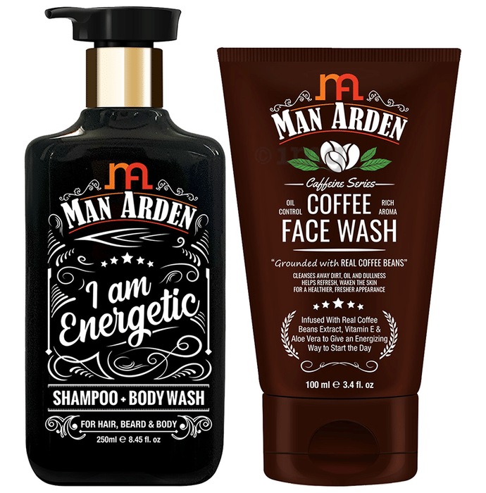 Man Arden Combo Pack of I am Energetic Shampoo + Bodywash (250ml) & Coffee Face Wash (100ml) cleanses your skin and hair.
