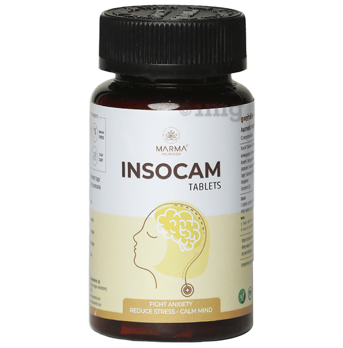 Marma Ayurveda Insocam Tablet is an Ayurvedic remedy for relieving stress and anxiety caused by work. This medicine helps stimulate the functioning of the brain to improve memory and concentration. It can also help in achieving a better quality of sleep.