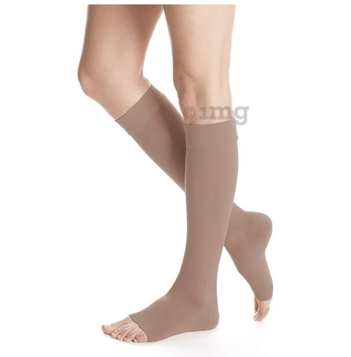 Maxis Cotton Knee Length Stocking provides a flexible and comfortable fit which ensures stockings remain in correct position and in place without constricting skin and leg. The compression at the at the ankle is more and it reduces gradually upwards the leg part to promote healthy circulation and keep you feeling energized. It is available in different sizes such as extra small, small, medium, large, extra large, XXL, XXXL, and XXXXl.