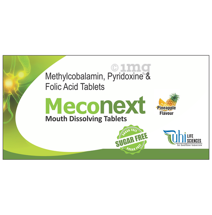 Meconext Tablet MD Pineapple Sugar Free is a tablet with a delicious pineapple flavour that helps to increase the formation of red blood cells in the body and prevent diseases caused due to deficiency of vitamin B-complex. It supports the health and overall well-being of the body.