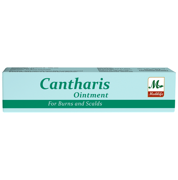 Medilife Cantharis Ointment is the ideal homoeopathic solution for burns and scalds. It eases burn discomfort, aids in preventing blister development, and promotes a quick recovery. It may help reduce the redness and inflammation of the affected skin.