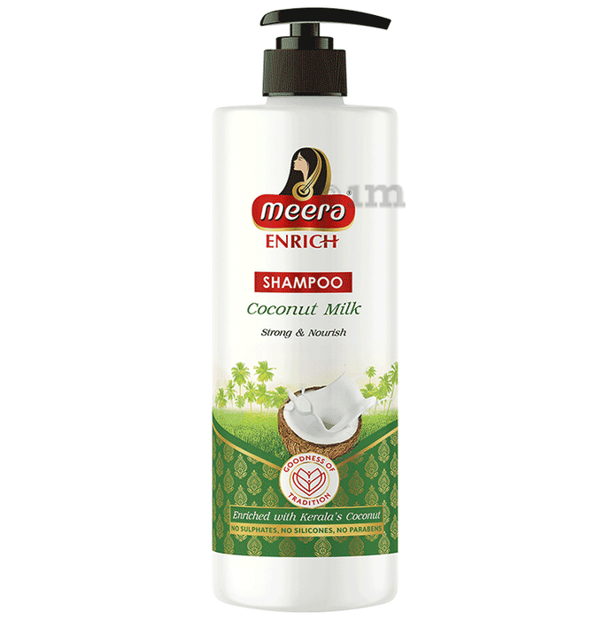 Meera Strong & Nourish Shampoo Coconut Milk is enriched with the goodness of Kerala's coconut milk. It is infused with the natural goodness of coconut milk which nourishes your hair and makes it stronger. Coconut milk shampoo helps cleanse the scalp and nourish hair by reducing hair breakage.