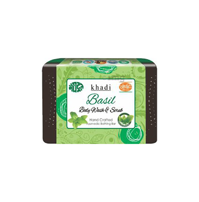 Meghdoot Basil Body Wash and Scrub is a handcrafted bathing bar that helps rid the body of dirt, grime, and impurities, potentially providing a cleansing effect. The presence of aloe vera in the body wash and scrub leaves the skin feeling soft and nourished.