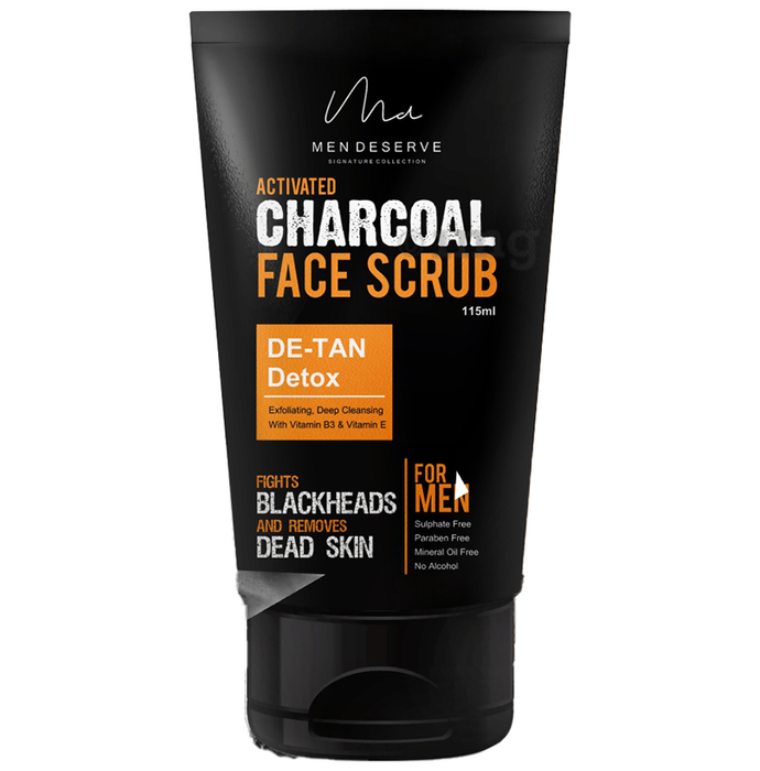 Men Deserve Activated Charcoal Face Scrub exfoliates and moisturizes your skin. It is formulated with activated charcoal, vitamin B3 and vitamin E that helps to detoxify the pores by removing blackheads and dead skin. The key ingredient of the scrub is activated charcoal, which draws out impurities, prevents acne, and balances the oily skin. The face scrub also has vitamin E, which helps reduce dullness and brighten the skin, and vitamin B3, which helps to reduce uneven skin tone, wrinkles, and pigmentation.