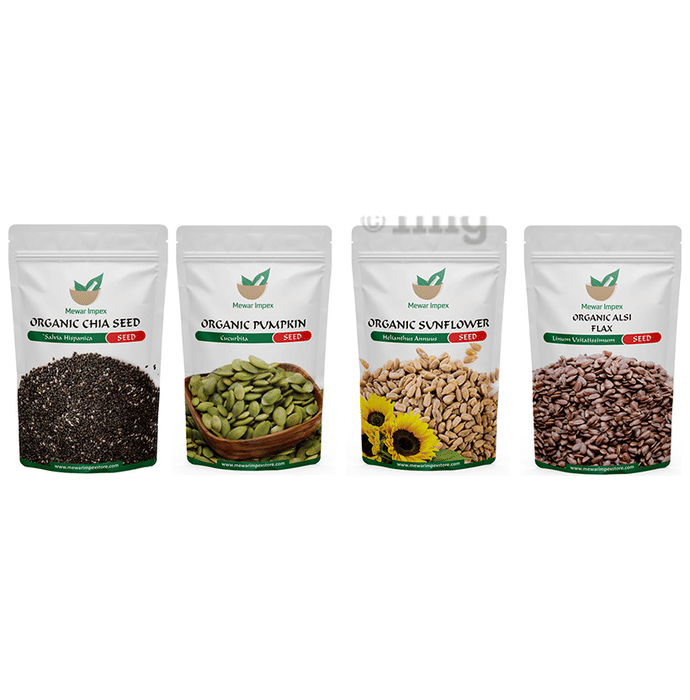 A licensed vendor partner from your nearest location will deliver Mewar Impex Combo of 4 Chia, Sunflower, Alsi Flax & Pumpkin Seed (100gm Each). Once the pharmacy accepts your order, the details of the pharmacy will be shared with you.
