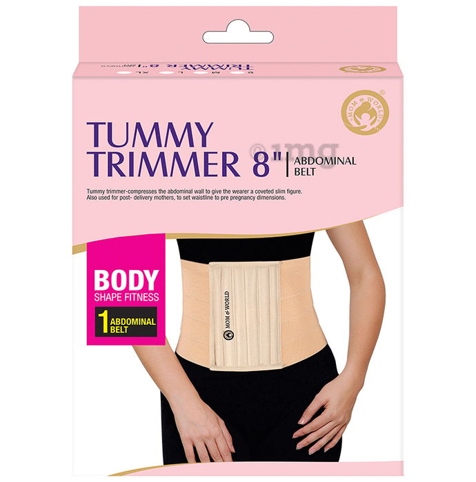 Mom and World Tummy Trimmer 8" Abdominal Belt Large is a premium quality belt that helps to compress the abdominal wall for a slim figure. It is made up of breathable fabric that helps to maintain a right posture and can reduce belly fat . It is adjustable and supports the post partum healing process.
