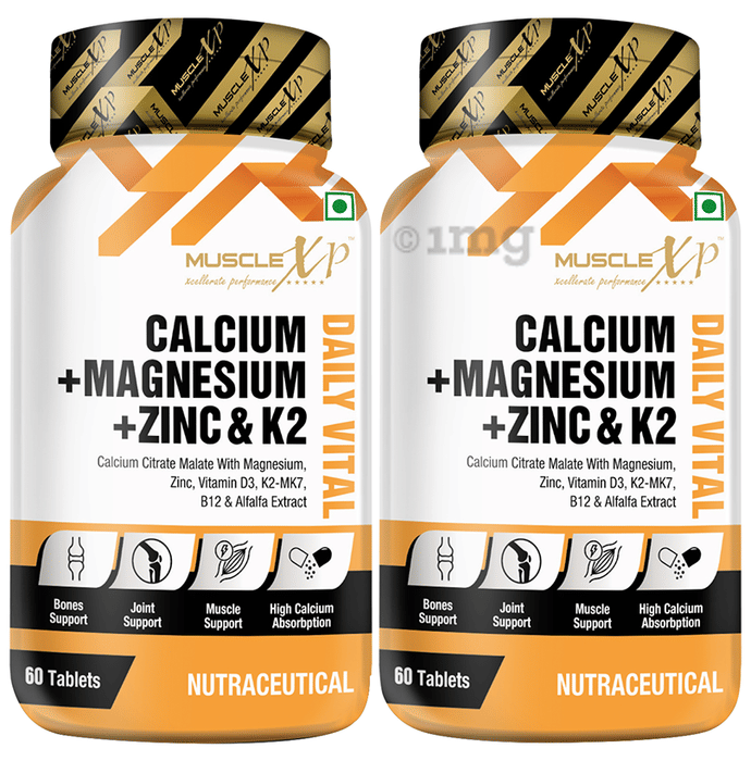 MuscleXP Daily Vital Calcium +Magnesium +Zinc & K2 Tablet (60 Each) is enriched with essential minerals to meet your nutritional needs and supports better bone and muscle health. It contains Vitamin D3 helps to enhance calcium absorption for better bone health and supports muscle building.