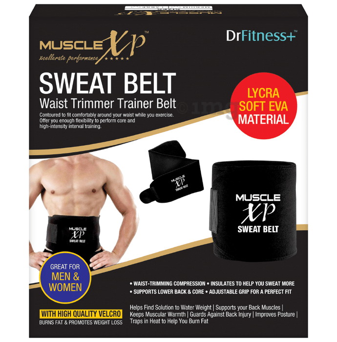 Information about MuscleXP DrFitness+ Sweat Belt for Men & Women, Burns Fat & Promotes Weight Loss Medium Black