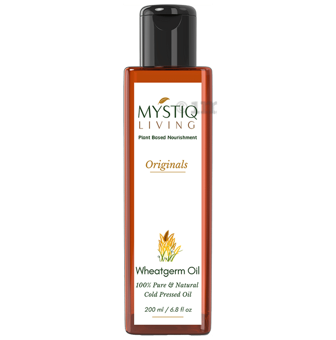 Mystiq Living Originals Wheatgerm Oil is a 100% pure and cold-pressed oil extracted from the finest quality fresh wheat germs, without the use of heat or refining agents. This natural unrefined state ensures the highest retention of nutrients.Wheat germ oil is rich in a variety of essential nutrients, including Folic acid, vitamin A, vitamin D, various vitamin B variants, vitamin E, Magnesium, Zinc, Potassium, antioxidants, and omega fatty acids. This nutrient-packed oil makes it an ideal addition to your skincare routine. When applied topically, Mystiq Living's wheat germ oil acts as a rejuvenating elixir for your skin.