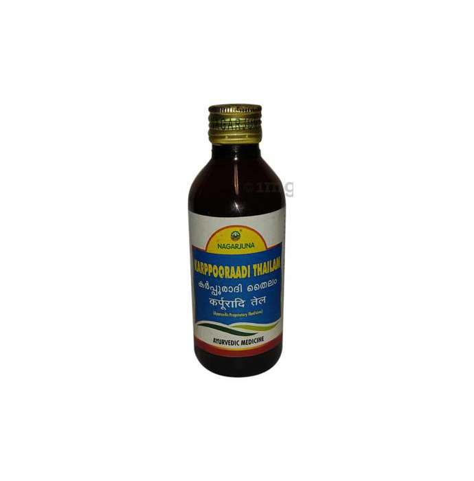 Nagarjuna Karppooraadi Thailam is a unique oil for external application to relieve pain, inflammation and cramps. The oil provides relief from pain caused due to blunt injuries, arthritis and other chronic as well as other disorders. If applied to the chest, it relieves chest congestion. It improves circulation, brings warmth and alleviates pain in joints.