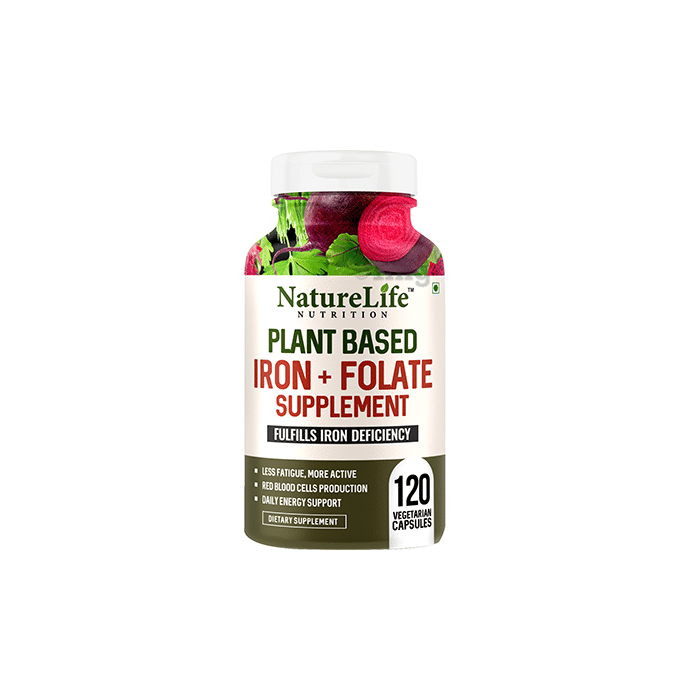 Nature Life Nutrition Plant Based Iron+Folate Supplement Vegetarian Capsule provides iron to the body. A shortage of iron in the blood can lead to a range of serious health problems, including iron deficiency - Anemia.