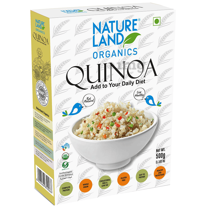 Natureland Organics Quinoa is a vegetarian product. Quinoa is one of the world's most popular health foods. It is a nutritious grain-like seed that is gluten-free, high in protein, has various beneficial antioxidants and is one of the few plant foods that contain all nine essential amino acids. It is versatile and can be prepared several ways.