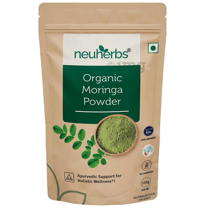 Neuherbs Organic Moringa Powder is made from pure, natural and organic moringa leaf to help you with growth and holistic wellness. Moringa powder has been used for various health advantages, especially among health-conscious people, as studies have shown that moringa powder is rich in protein, vitamins A and C, calcium, iron and fibre. Moringa powder enhances immunity, improves digestion, and supports weight loss and eyesight. Neuherbs organic moringa powder is made without any preservatives, colours, or fragrances.