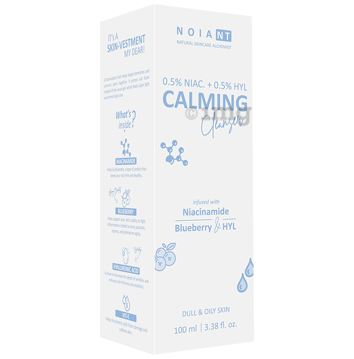 Noiant 0.5% Niacinamide + 0.5% Hyl Calming Cleanser is enriched with niacinamide, blueberry extracts, vitamin E and hyaluronic acid that helps keep the skin hydrated even after cleansing. This face wash leaves a fruity smell and helps keep the skin clean and hydrated.