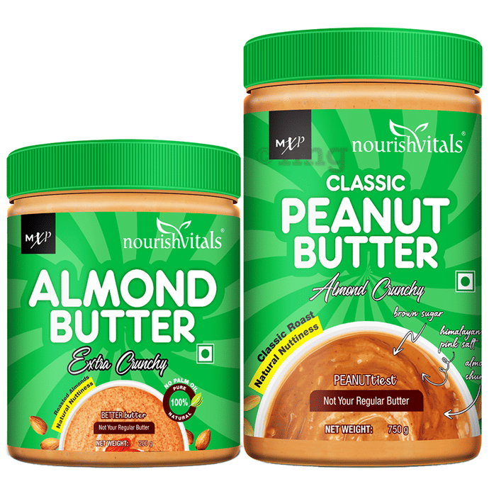 Information about NourishVitals Combo Pack of Almond Butter Extra Crunchy 200gm and Classic Peanut Butter Almond Crunchy 750gm