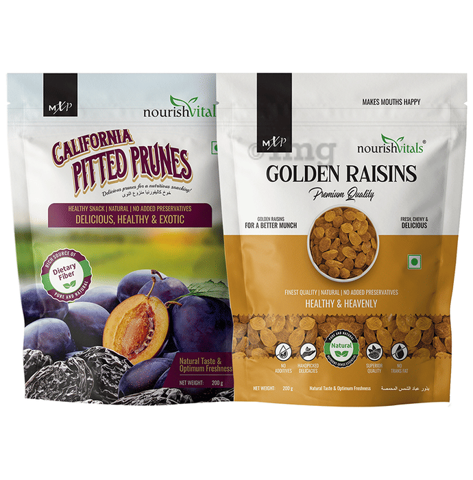 NourishVitals Combo Pack of California Pitted Prunes and Golden Raisins Premium Quality (200gm Each)