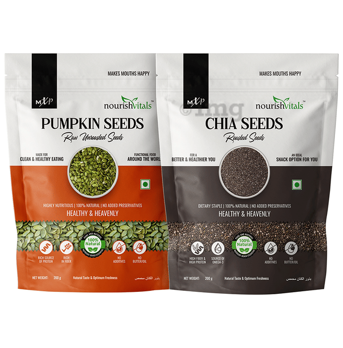 Information about NourishVitals Combo Pack of Pumpkin Seeds Raw Unroasted and Chia Seeds Roasted (200gm Each)