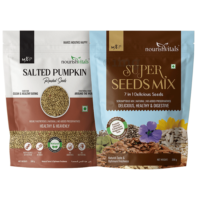 Information about NourishVitals Combo Pack of Salted Pumpkin Roasted Seeds and Super Seeds Mix (200gm Each)