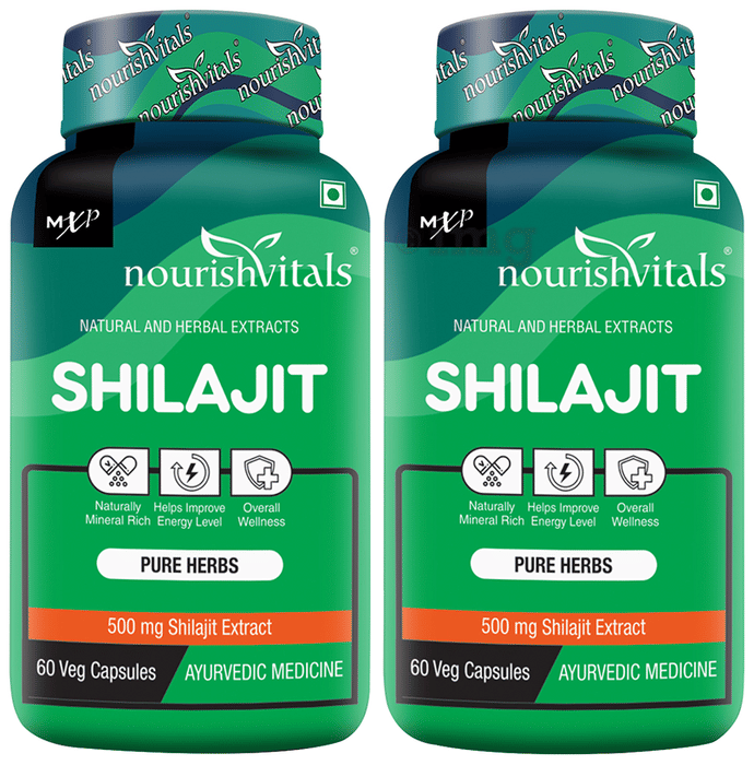 NourishVitals Shilajit 500mg Veg Capsule is an ayurvedic product that is beneficial to improve the energy level and supports overall wellness. It can also strengthen muscles, helps to provide stamina and acts as a health tonic.
