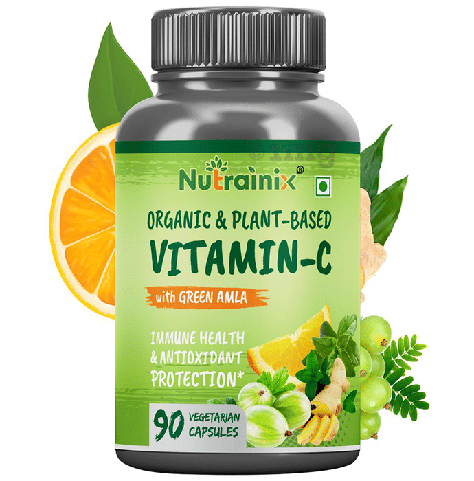 Nutrainix Organic & Plant-Based Vitamin-C Vegetarian Capsule loading up on vitamin C stimulates antibody production and often serves as the body's first line of defence during cold and flu season. It stimulates antibody production to aid the immune system.