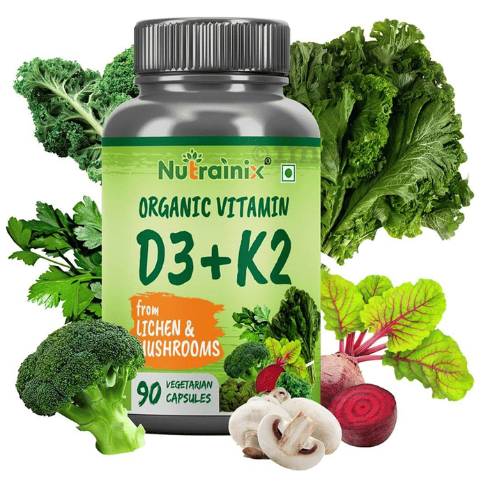 Nutrainix Organic Vitamin D3+K2 Vegetarian Capsule is a 100% natural and vegetarian supplement for bone health and immune support. This formula not only promotes the proper absorption of calcium with D3 but the correct distribution to your bones where you need it most. It is formulated with plant-based vitamin D3. It ensures calcium absorption and supports bone, teeth, muscle, and immune health.