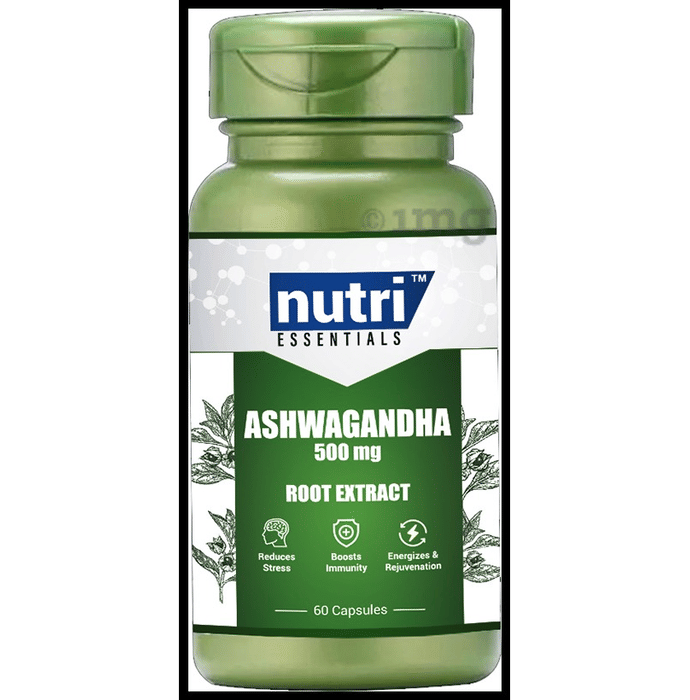 Nutri Essential Ashwagandha 500mg Capsule is a health supplement that improves energy levels and manages stress. It is effective in reducing stress and enhances vitality in men.