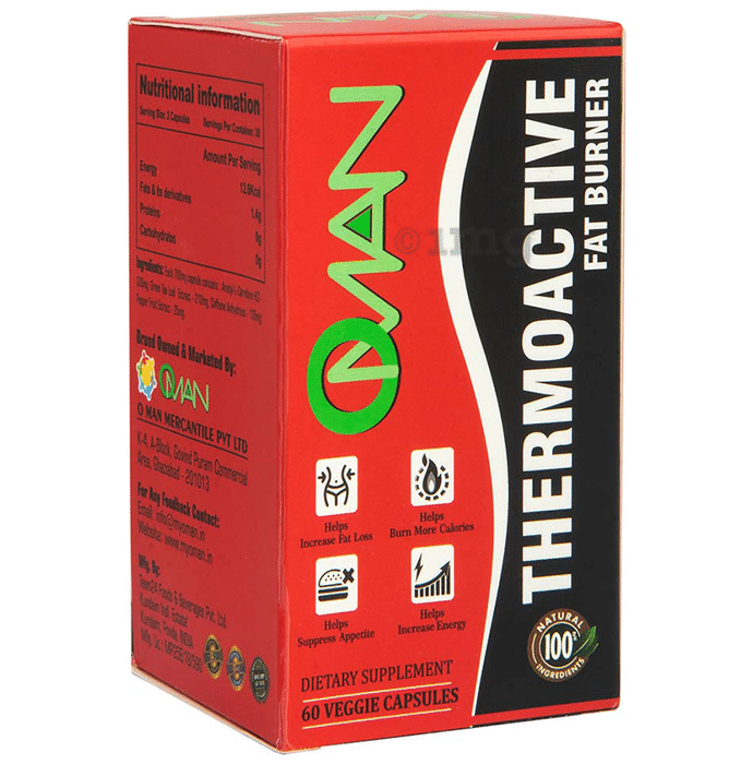 Oman Thermoactive Fat Burner Veggie Capsule is a weight loss supplement and has ingredients with all the required minerals for the body. It is made with ayurvedic ingredients and health improvement properties. Fat burner is a dietary supplement with essential substances which are responsible for burning the extra fats from the body and losing fat in less time. Thermoactive fat burner presents natural fat burner supplements which are chemical free so leave no side effects on the body.