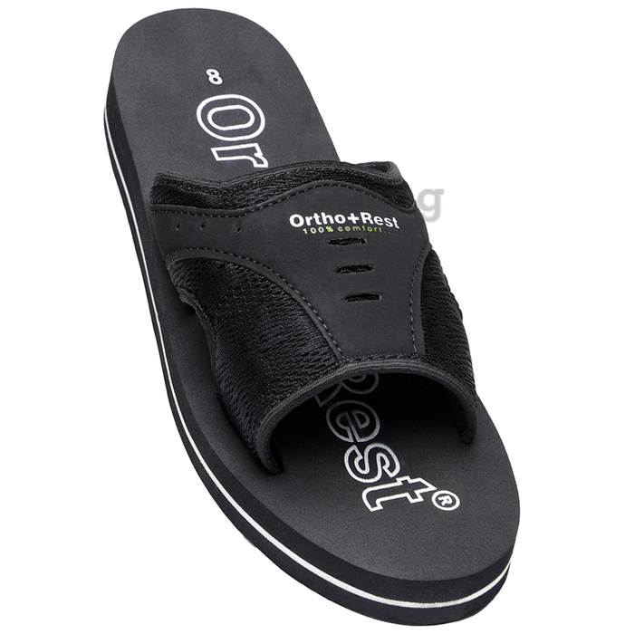 Ortho + Rest Extra Soft Ortho Doctor Slipper, Orthopedic Footwear For Men Daily Home Use Slides Black