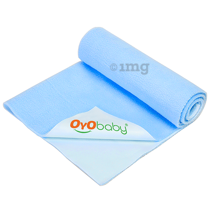 Oyo Baby Waterproof Rubber Dry Sheet is comfortable and durable. It is made from a 100% leak-proof mattress protector and baby skin-friendly fabric. This baby dry sheet protects your baby and bed from wetting. It provides long-lasting durability and will surely be the best alternative cot sheet for your baby's diapers as they quickly absorb water. This baby bed protector is ultra soft and has lightweight underpads. It is hypoallergenic, economical, and lightweight can be sterilized up to 90 degrees C. This sheet is also known as like (baby mat waterproof, mattress protection, urine sheet with waterproof, baby cot sheet, or quickly dry sheet for baby). It helps in protecting your baby from major skin problems caused by the usage of diapers on your child's skin, (gives ultimate protection against damaged immunity, urinary infections, skin irritations, redness and rashes). It absorbs and holds 8 times its weight of water to comfort your baby on his day's nap, night's sleep, dressing up or playing time.