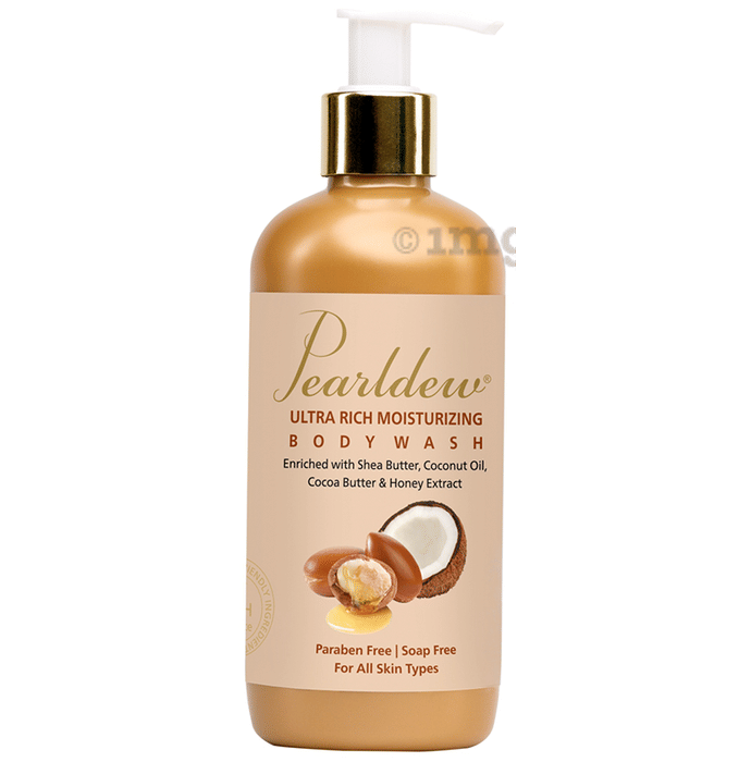 Pearldew Ultra Rich Moisturizing Body Wash is a highly intensive hydrating body wash. It is enriched with a powerful botanical complex, improving the skinโs brightness and tone. This body cleanser combats skin darkening caused by daily stressors like dirt and pollution while leaving the skin smoother and softer. It is formulated with glycerine, shea butter, cocoa butter, and honey. It is paraben-free and soap-free.
