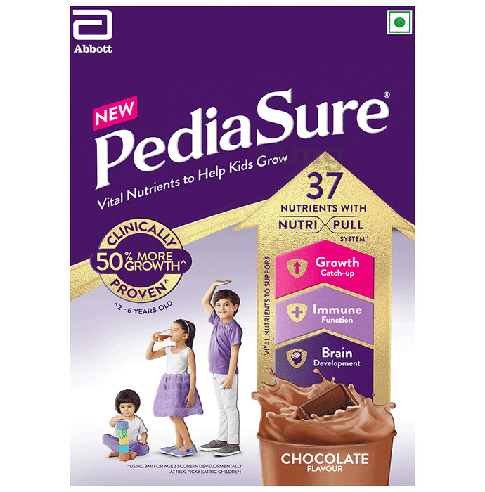 PediaSure is a scientifically designed nutritional drink, clinically proven to address the needs of the growing child and promotes catch up growth. PediaSure provides 37 nutrients to support healthy growth and development. PediaSure, with Nutri Pull system, helps with better absorption of key nutrients and gives 50% More Growth in 90 days.