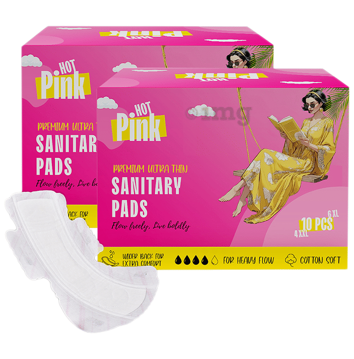 Pinq Polka Hot Pink Premium Ultra Thin Sanitary Pads (6XL & 4XXL Each)