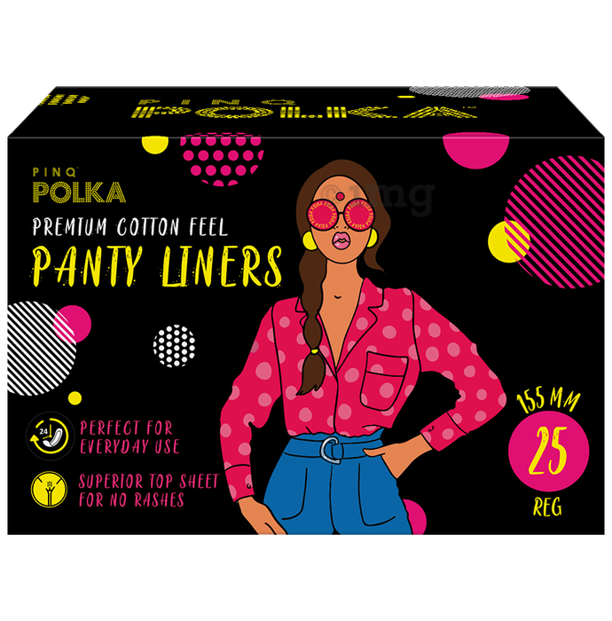 PINQ Polka Premium Cotton Feel Panty Liners Extra Large It's bold, playful, and makes you feel good while you are on your period. Polka brings you just the right affordable product range with premium cotton feel sanitary pads. Don't let the fear of rashes, itching & stains weigh you down! Combined with superior gel technology, pinq polka (XL size) premium soft cotton feel ultra thin rash-free sanitary pads are perfect for women on the go. These pads are free from any chemicals and are chlorine-free and bleach-free. A wider back & 5 5-way sticking mechanism provides extra comfort and keeps leaks and stains at bay.