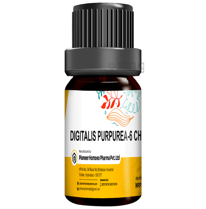 Pioneer Pharma Digitalis Purpurea Globules Pellet Multidose Pills 6 CH is a multipurpose health tonic which is used to deal with minor issues of the heart, kidneys and skin. It soothes cuts and wounds and may be used for aconite poisoning. It helps strengthen heart muscles and protects the heart. Anxiety and anxiousness of the mind can also be relieved by its use.