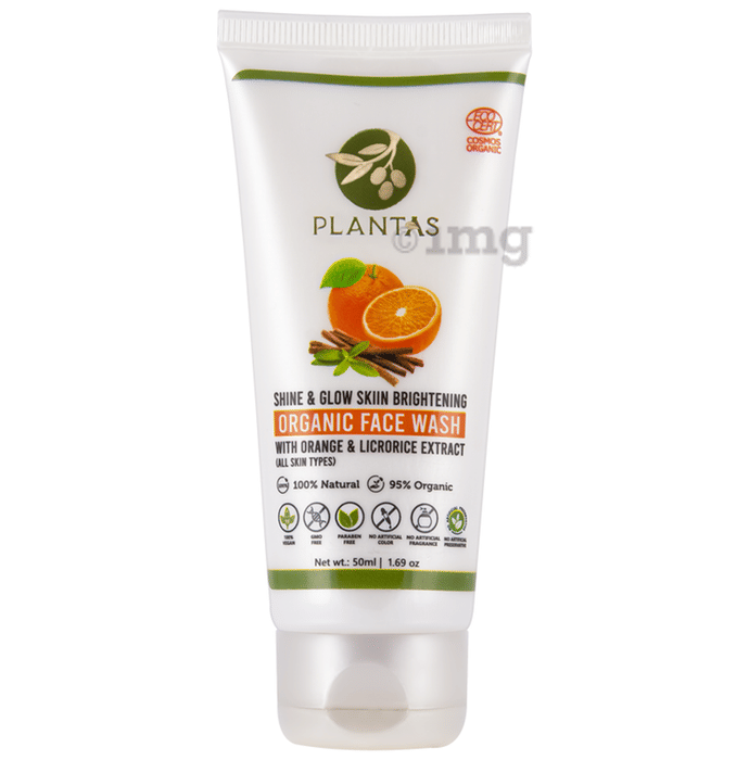 Plantas Shine and Glow Skin Brightening Organic Face Wash is a gel-based face wash. It is a combination of organic Liquorice, Orange and Sandalwood. The face wash is certified by Ecocert Greenlife, France, under the Cosmos V3 standard and is suitable for all skin types.