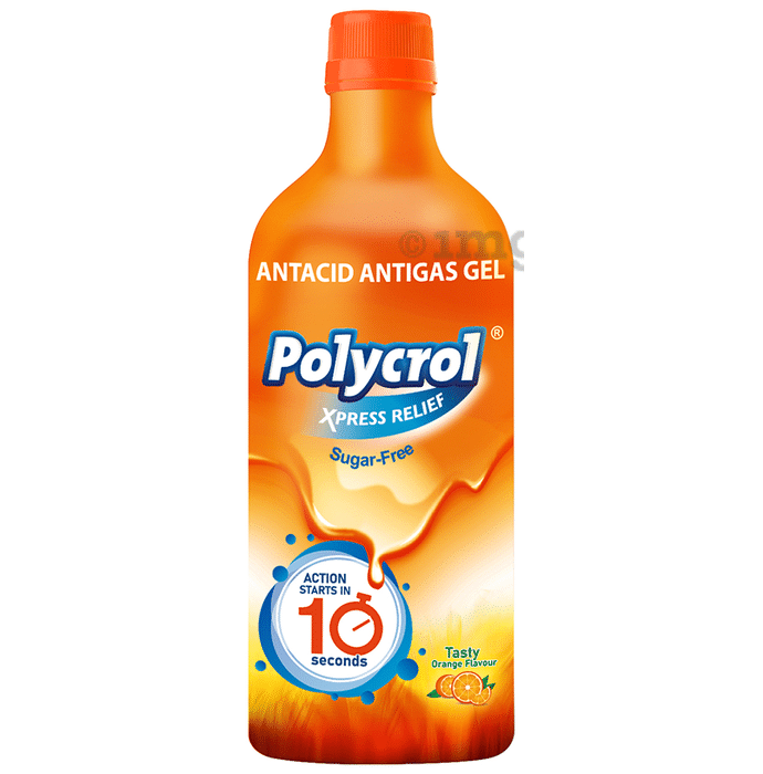 Information about Polycrol Xpress Relief Sugar-Free Antacid Antigas Gel | Flavour Tasty Orange