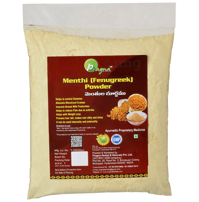 Pragna Menthi (Fenugreek) Powder helps in controlling Diabetes.It not only alleviates menstrual cramps but also helps in improving production of breast milk .It is also useful in reducing pain due to arthritis.It helps in preventing hair fall and makes the hair silky and shiny.