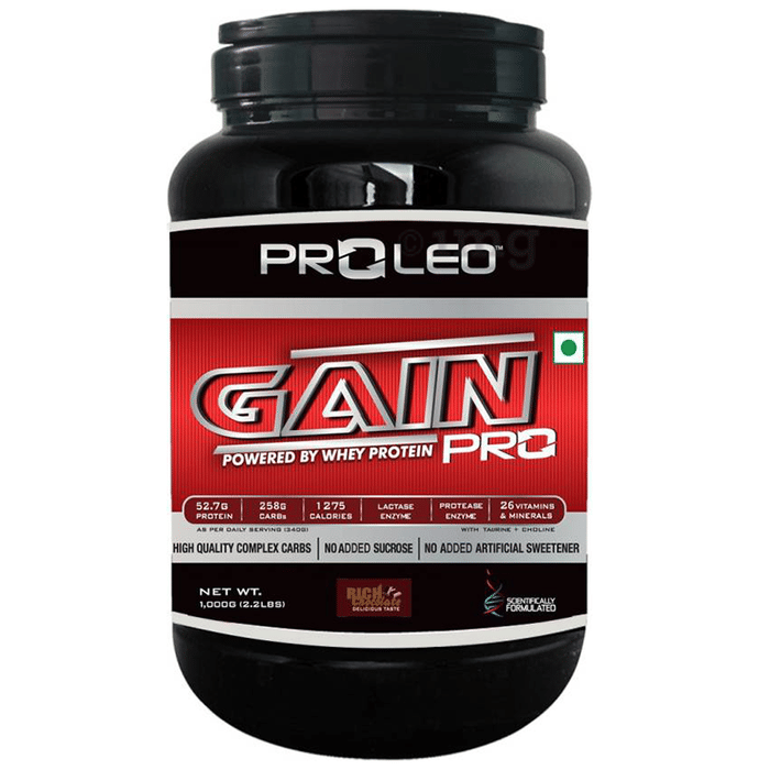 Proleo Gain Pro is an weight gain formula developed by proleo gain pro. PROLEO GAIN PRO, has powerful 60gms of whey protein blend sourced from The United States of America along with carbohydrates more than 250gms which provides 1279 calories. Proleo Gain Pro, initiates quick muscle growth and does it without propelling fat development.
