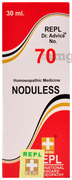 REPL Dr. Advice No.70 Nodules Drop treats numerous small nodules under skin, Cauliflower excredcences of os uteri, with flying pains, Patient tends towards malignancy and inveterate skin disease. Gouty nodo sities.