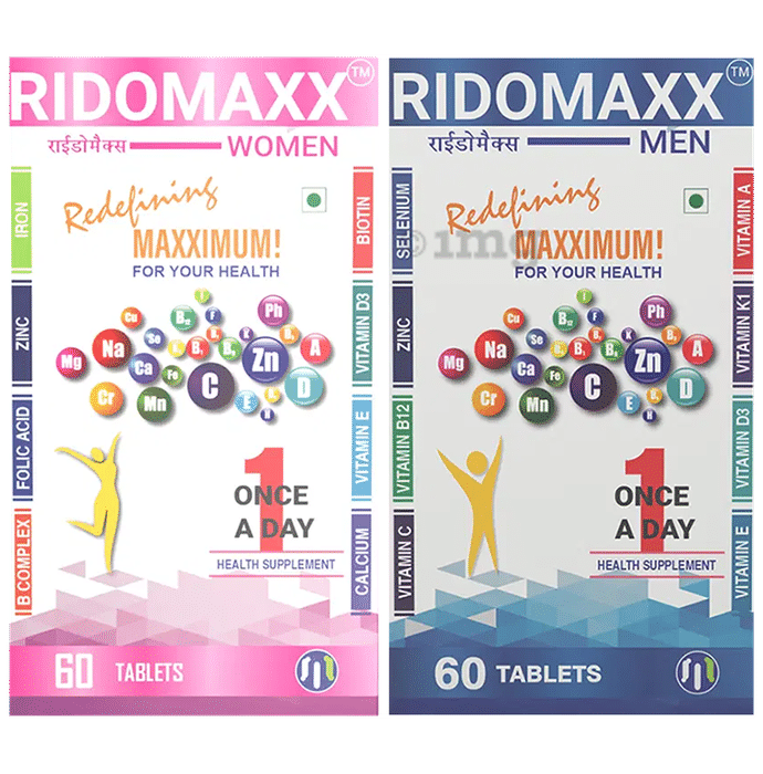 Information about Ridomaxx Combo Pack of Multivitamins & Minerals Tablet for Men (60) & Multivitamins & Minerals Tablet for Women (60)