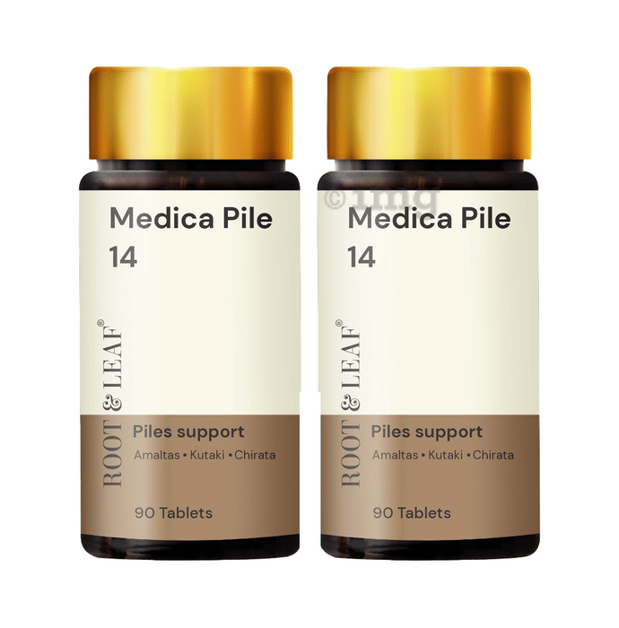 Root & Leaf Medica 14 Piles Support Tablet contains dried aqueous extracts from 14 different herbs. It helps support symptoms like constant itching, blood spots in stool, and haemorrhoids (lumps around the anus).