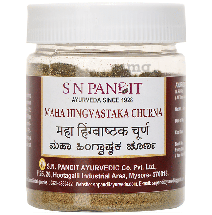 S N Pandit Ayurveda Maha Hingvastaka Churna has been made more potent and palatable by the addition of dhanyaka and kaidarya. The choorna has been found extremely beneficial in all cases of indigestion. Also, it has been used extensively in the management of dysmenorrhoea where it not only reduces the pain but also the continuous use of it regulates the cycles.