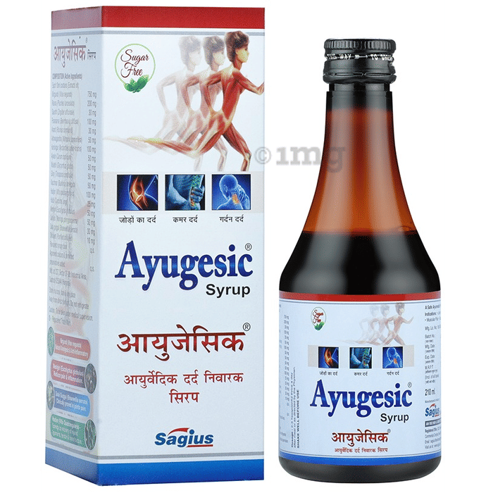 Sagius Ayugesic Syrup contains ashwagandha nirgundi and shilajeet, which are effective in joint pain, shoulder pain, muscular stiffness, sprains and strain.