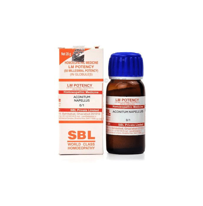 SBL Aconitum Napellus is a homoeopathic medicine which is an effective remedy for physical or mental restlessness. It helps in reliving heaviness of head, sensation of pressure inside the brain and burning headaches. It is also beneficial for eyes and helps in reducing inflammation and redness in eyes. Stomach related ailments such as gastritis and burning pain can also be relieved by its use.