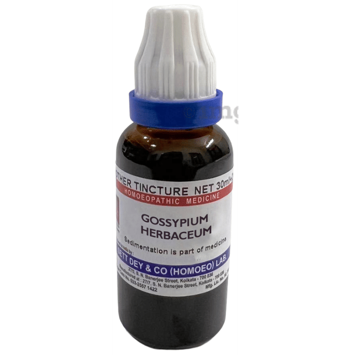 Sett Dey Gossypium Herbaceum Mother Tincture Q is a homeopathy solution. It is an effective solution for ailments related to the female reproductive system. It is also useful in regulating irregular periods. It aids in relieving nausea and vomiting.