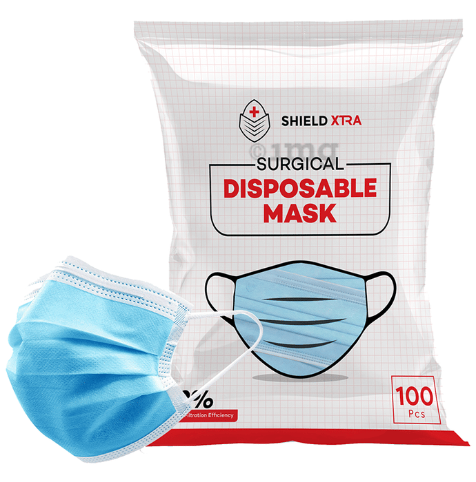 Shield Xtra 3 Ply Surgical Disposable Mask (100 Each) Blue
