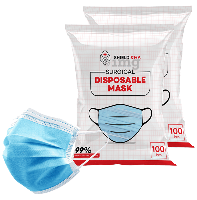 Shield Xtra 3 Ply Surgical Disposable Mask (100 Each) Blue