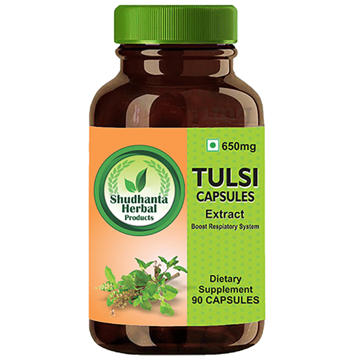 Shudhanta Herbal Tulsi 650mg Capsule is formulated with ayurvedic herb Tulsi. It has antimicrobial,anti-allergic and anti-inflammatory properties. It is not only beneficial in Asthma, bronchitis, coughs and flu but also helps in regulating cholesterol. It helps in detoxification of the body and also provides relief from stress. It has antioxidant properties and is also useful in boosting natural immunity.It is beneficial in improving digestion and relieving ailments associated with it.
