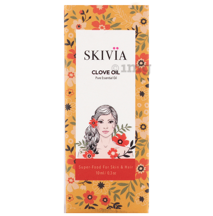 Skivia Clove Essential oil contains the goodness of clove buds. It helps in cuts, burns, toothache, muscle pains and skin infections. The essential oil is extracted through water distillation from the buds of the clove. It is also produced from the stem and leaves. It has anti-bacterial properties in it.
